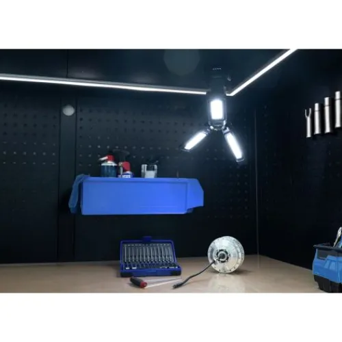 Durch den Einsatz von drei universell drehbaren LED-Modulen mit der leistungsstarken SMD-LED-Technologie erzeugt die Leuchte ein intensives helles Licht. Die Leuchte kommt dabei auf eine Helligkeit von bis zu 7000 lm.