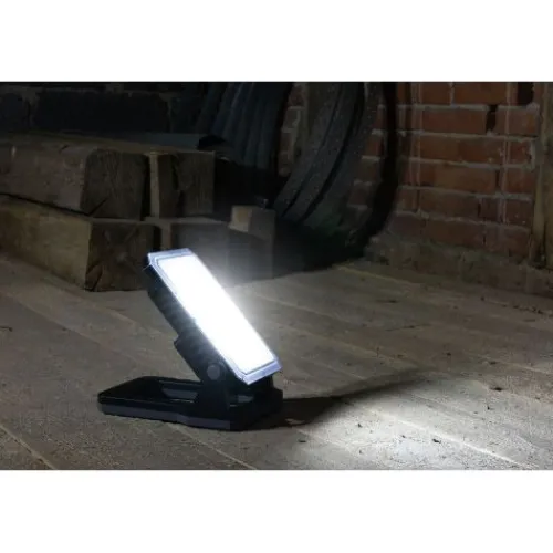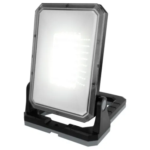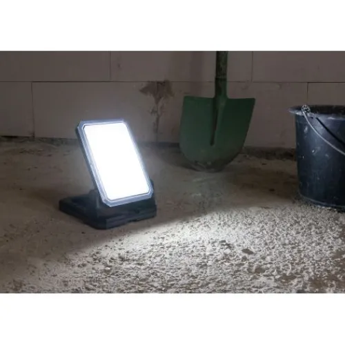 Das robuste und stoßfeste Gehäuse ist besonders widerstandsfähig gegen mechanische Beanspruchung. Dank IPX4 ist die Leuchte vollständig gegen Spritzwasser aus einem beliebigen Winkel geschützt. Somit können Sie sich bei optimaler Ausleuchtung im Innen- und Außenbereich voll auf Ihre Arbeit konzentrieren. Die Leuchte kann mit dem integrierten Haken einfach aufgehängt bzw. mit den integrierten Magneten auf metallischen Oberflächen fixiert werden.