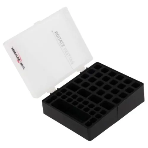 - Durch die übersichtliche Box sind immer alle Batterien aufgeräumt und sicher verstaut