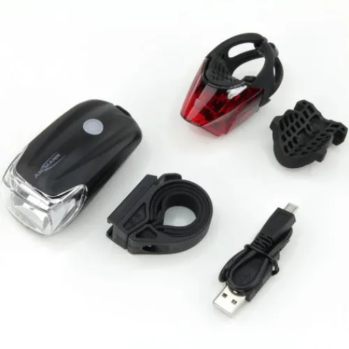 Das ANSMANN Bikelight-Set: Ein hochwertiges Leuchtenset, bestehend aus 5W LED-Frontscheinwerfer & -Rückleuchte für die einfache Montage an Fahrräder aller Art. Die im Straßenverkehr zugelassene Beleuchtungseinheit für Fahrräder und Mountainbikes etc. leuchtet mit der sehr hellen Frontleuchte den Fahrweg optimal aus, ohne den Gegenverkehr zu blenden.
