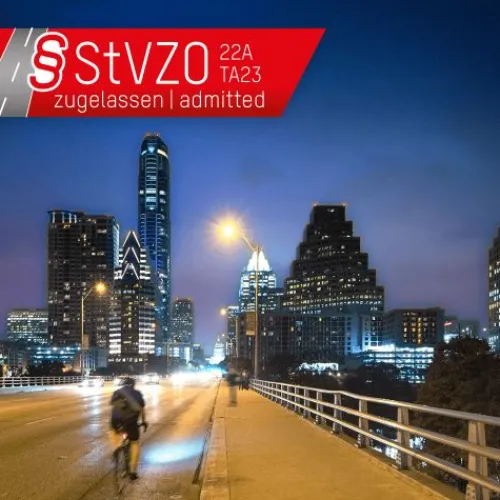 Die Frontleuchte erreicht eine Leuchtweite von bis zu 140m und mit leuchtet bei einstellbarer Helligkeit (100% / 50%) bis zu 6 Stunden.