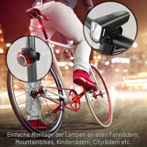 Das ANSMANN Bikelight-Set mit Automatikmodus: Ein hochwertiges Leuchtenset, bestehend aus Frontscheinwerfer & Rückleuchte für die einfache Montage an Fahrrädern aller Art.