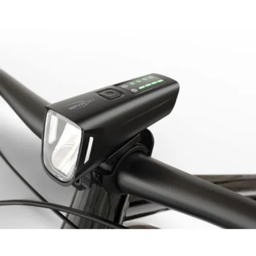 Die im Straßenverkehr zugelassene Beleuchtungseinheit für Fahrräder und Mountainbikes leuchtet mit der sehr hellen OSRAM-LED Frontleuchte den Fahrweg optimal aus, ohne den Gegenverkehr zu blenden. Die Frontleuchte erreicht eine Leuchtweite von bis zu 200 m und leuchtet bei einstellbarer Helligkeit (hoch / mittel / niedrig / Automatik) bis zu 6 Std..