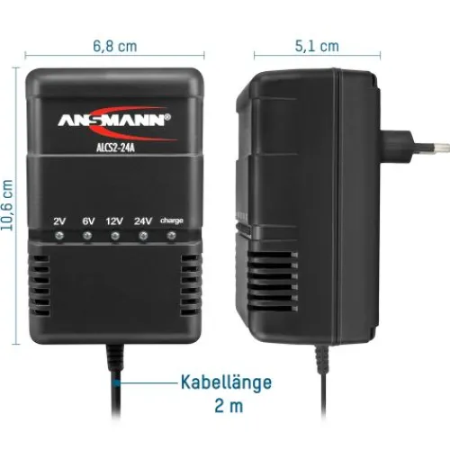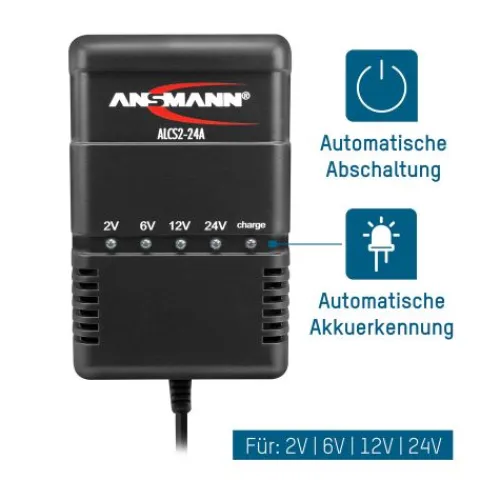 Die Akkuspannung wird automatisch eingestellt. Das ALCS 2-24A ist kurzschluss- und verpolsicher.