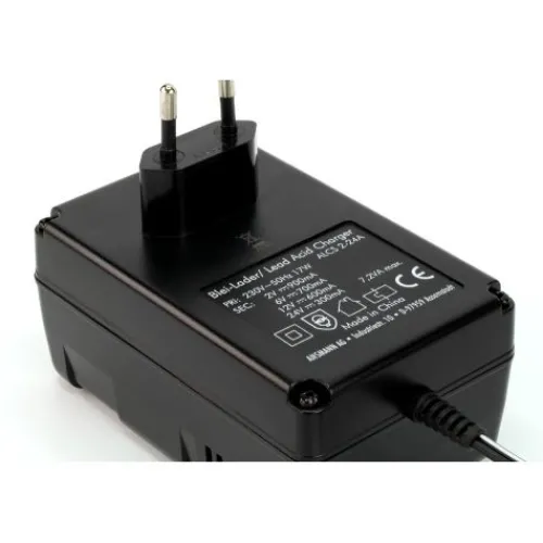 Der Ladestrom bei 2V ist 900mA, bei 6V 700mA, bei 12V 600mA, bei 24V 300mA. Die Ladung erfolgt nach IU-Kennlinie. Dank modernster Ladetechnik ist ein überladeschutz vorhanden.
