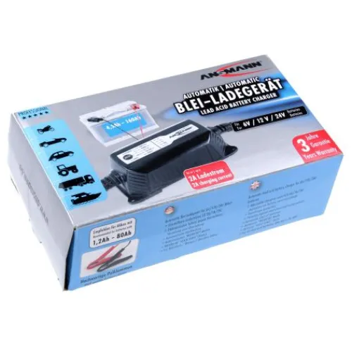 Für 6 V- /12 V- oder 24 V- Bleiakkus mit einer Kapazität von 1,2Ah – 80Ah und bis zu 2A Ladestrom