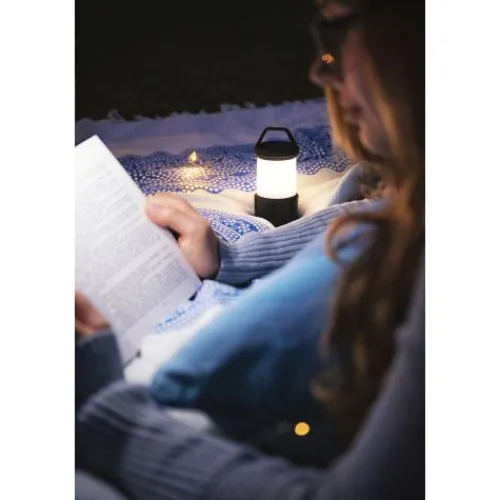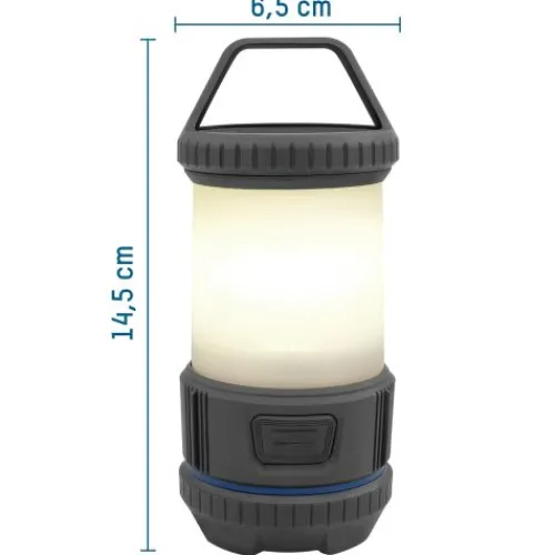 Die Camping Leuchte bring Licht ins Dunkle. Mit einer Leistung von bis zu 175 Lumen und der O-Ring LED leuchtet die CL200B horizontal 360° aus. Im 100% Modus bringt die Lampe es auf stattliche 14h Leuchtzeit, im 10% Modus sogar auf 94h!