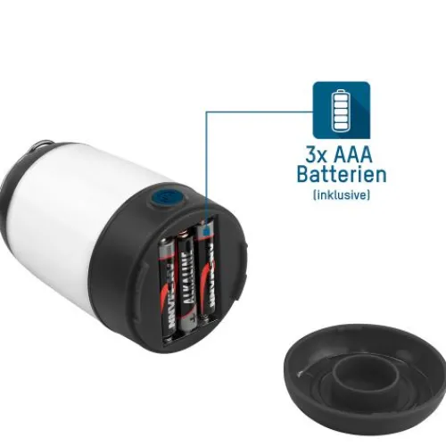 Mini Campinglampe mit 3W LED – Ideal, um auf dem Campingplatz, bei Festivals, im Garten, Balkon oder bei kleinen Nachtwanderungen für ausreichend Beleuchtung zu sorgen.