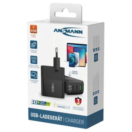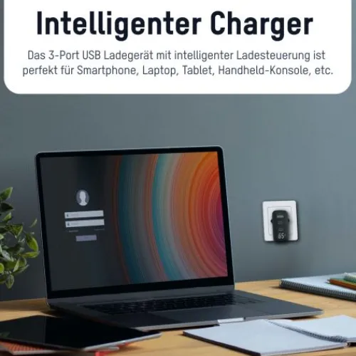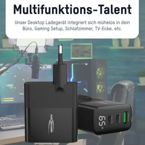 Das USB-Ladegerät von ANSMANN mit mehreren USB Ausgängen und einer Leistung von 65 W bietet die ideale Ladelösung für Ihren Arbeitsplatz im Büro oder das Homeoffice zu Hause.