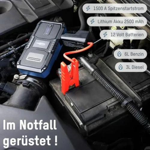 Mit diesem kompakten, aber leistungsstarken Jumpstarter kann eine schwache 12V Fahrzeugbatterie (z.B. von Auto, Motorrad oder Boot) in Sekundenschnelle überbrückt und dann der Motor gestartet werden.