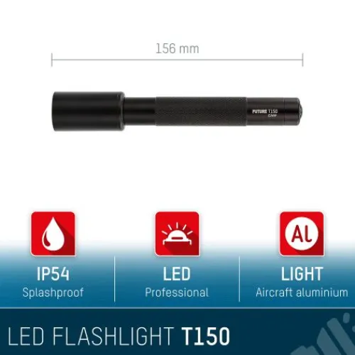 Die professionelle Taschenlampe FUTURE T150 von ANSMANN besticht durch ihre optimalen Gehäuseproportionen und griffige Oberfläche. Durch die Verwendung eines großen Schalters in der Endkappe ist die Lampe ideal für den Einhandbetrieb, auch mit Handschuhen.