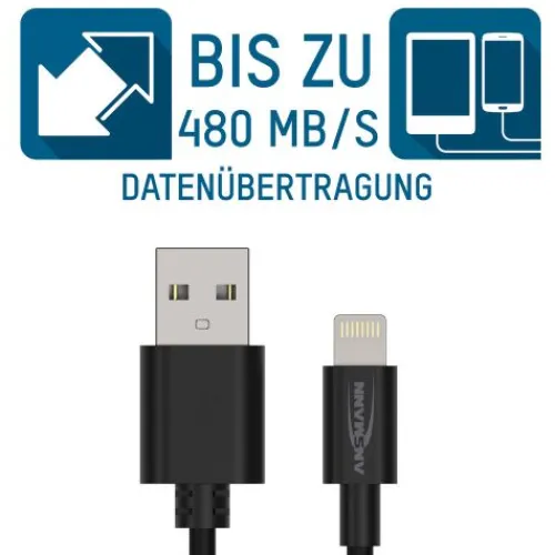 Das praktische ANSMANN Daten und Ladekabel bietet die optimale Lösung zum Laden mit bis zu 2.4 A und synchronisieren Ihrer Daten mit bis zu 480 Mbit/s.