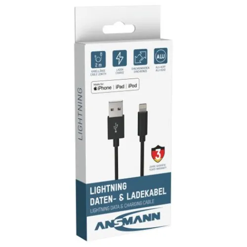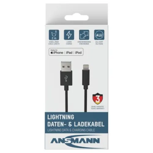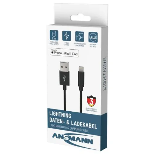 Das praktische ANSMANN Daten- und Ladekabel bietet die optimale Lösung zum Laden und Synchronisieren ihrer Daten mit bis zu 480Mbps.