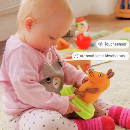 Eine eingebaute Automatik sorgt dafür, dass das Nachtlicht nach 30 Minuten von alleine abschaltet. So bleibt den Kleinen (und Großen) genügend Zeit zum Einschlafen. Dank Batteriebetrieb kann die Maus auch auf Reisen mitgenommen werden und sorgt so für eine vertraute Umgebung.