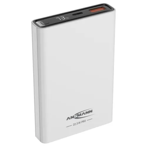 Die ANSMANN Powerbank unterstützt am USB-A Port das Huawei Supercharge Protokoll mit max. 22.5 Watt und ist auch Quickcharge 3.0 kompatibel. Der Typ-C Port unterstützt über das Power Delivery Protokoll Ladegschwindigkeiten bis zu 20 Watt und PD-PPS mit bis zu 22 Watt.