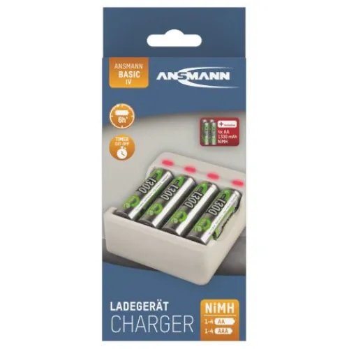 ANSMANN AG Akku-Ladegerät Basic IV + 4× AA 1300mAh^ Akku-ladegeräte