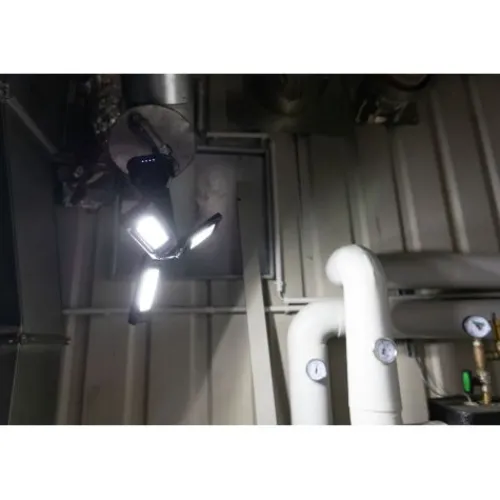 Das robuste und stoßfeste Gehäuse ist besonders widerstandsfähig gegen mechanische Beanspruchung (IK07). Mit geschlossener Ladebuchsen-Abdeckung ist der Strahler dank Schutzart IPX4 spritzwassergeschützt, somit kann man sich bei optimaler Ausleuchtung im Innen- oder Außenbereich voll auf seine Arbeit konzentrieren.