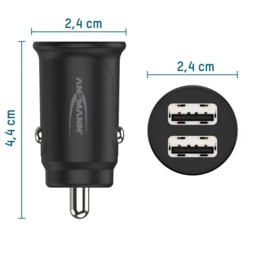 Das USB-Kfz Ladegerät von ANSMANN mit 2 USB-Ports und einer Leistung von 12 W bietet die ideale Ladelösung für Ihre Anwendung. Durch die intelligente Ladesteuerung und Multisafe Technologie wird Ihre Anwendung optimiert und sicher geladen.