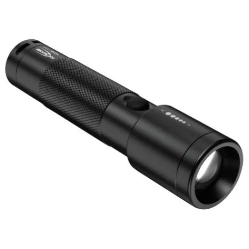 Die professionelle Taschenlampe FUTURE T200F von ANSMANN besticht durch ihre optimalen Gehäuseproportionen und griffige Oberfläche. Durch die Verwendung eines großen Schalters ist die Lampe ideal für den rauen Einsatz, auch im Einhandbetrieb oder mit Handschuhen.