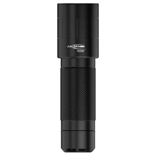 Die professionelle Taschenlampe M250F von ANSMANN besticht durch ihre optimalen Gehäuseproportionen und griffige Oberfläche. In Verbindung mit dem mikrokontrollergesteuerten Endkappenschalter ist die M250F für taktische Einsatzgebiete geeignet und erlaubt im Betrieb das Schalten der drei Leuchtfunktionen 100% Leuchtkraft, 30% Leuchtkraft oder Stroboskoplicht durch leichtes Antippen des Schaltknopfes. Des weiteren ist das lautlose Morsen im noch ausgeschalteten Zustand der Leuchte möglich. Durch die robuste und sehr griffige Gehäuseoberfläche ist die Taschenlampe M250F ideal für den rauen Einsatz, auch im Einhandbetrieb oder mit Handschuhen.