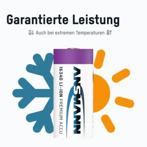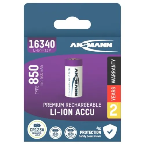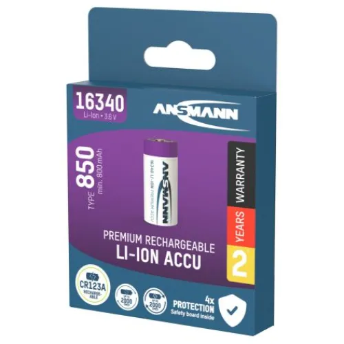 Der ANSMANN 16340 / RCR123 Li-Ion Akku ist extrem langlebig und kann auch bei harten Einsatzbedingungen bis zu 2000 mal aufgeladen werden. Durch die sehr geringe Selbstentladung hält der Akku auch bei Nichtgebrauch seine Energie über einen langen Zeitraum. Zudem ist das Gewicht der Li-Ion Zelle im Vergleich zu herkömmlichen Akku-Technologien (z.B. NiCD/NiMH/PB) bei gleicher Leistung weitaus geringer.