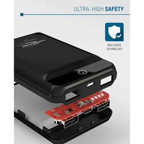 Die Medien warnen immer wieder vor Billig-Produkten, welche ohne jede Vorwarnung explodieren oder beginnen zu brennen. Mit ANSMANN gehen Sie auf Nummer sicher. Der eingebaute Überladeschutz sorgt dafür, dass die Powerbank nach erfolgreicher Ladung den Ladevorgang automatisch beendet. Der Tiefentladeschutz schaltet die PowerBank ab, sobald die Spannung der PowerBank beim Laden eines angeschlossenen Gerätes unter einen bestimmten Wert sinkt und verhindert somit eine Schädigung des Akkus und des Produktes. Der Kurzschlussschutz rundet die Sicherheitsfunktionen ab und sorgt neben der Abschaltautomatik für maximale Sicherheit.