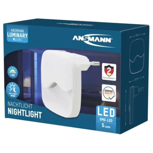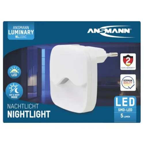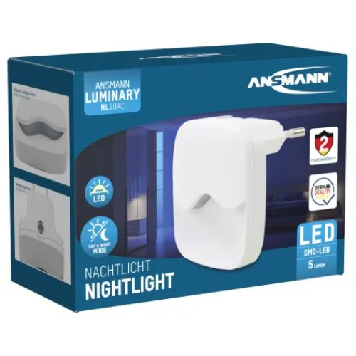 Das ANSMANN LED-Orientierungslicht NL10AC mit integriertem Dämmerungssensor sorgt für eine ausreichende Helligkeit im Dunkeln. Die warmweiße SMD-LED sorgt für eine homogene und leichte Ausleuchtung. Das steckerbetriebene Nachtlicht, im ansprechenden Gehäusedesign, ist klein, leicht und handlich. Durch den integrierten Dämmerungssensor im Gehäuse aktiviert bzw. deaktiviert sich das Nachtlicht bei Dämmerung selbstständig. Eine leichte nächtliche Orientierung ist dadurch jederzeit gewährleistet. Daher ist es als Orientierungslicht z. B. auf Gängen und in Garagen oder Treppenhäusern oder als sanftes Nachtlicht in Kinderzimmern bestens geeignet.