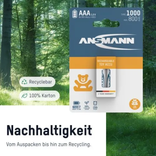 ANSMANN AG Toy NiMH Akku Micro AAA Typ 1000 (min. 800 mAh) maxE 2er Papierblister^ Akkus
